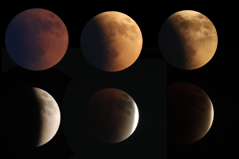 月全食各阶段的变化。(新华社/发)