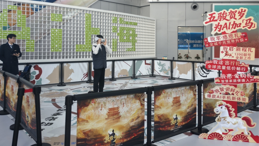 浦东民生路旗舰店变身 “AI科技年味乐土”,市民可体验AI贤达家居、XR敦煌文化等新潮样式;长宁5G‑A移动申花联名厅交融科技与体育文化,成为球迷打卡地;四平电影院打造XR 数智党建空间,让市民千里浸式感受红色历史。