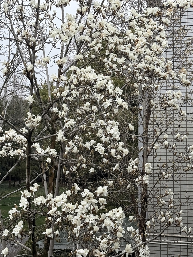 今天,在上海植物园的植物大楼背面,一株白玉兰已是满树似锦。结拜的花朵缀于枝端,朵朵朝上,恰如《离骚》中“朝饮木兰之坠露”的漂后,又似古东说念编缉下“霓裳片片晚妆新”的婉约,令市民果然惊喜。