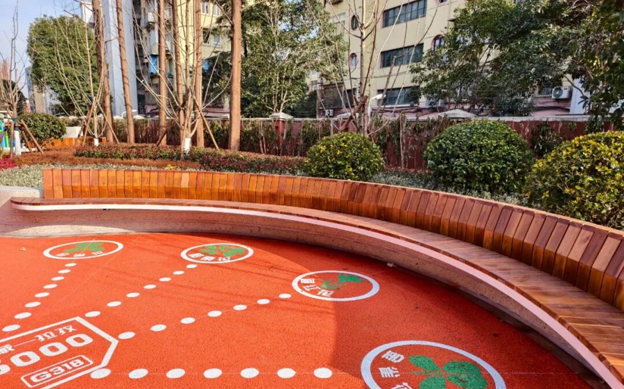 318国谈(上海-西藏)被称为“此生必驾中国最好意思公路”。为了让绿地更有东谈主文景不雅本性,相关部门在健身步谈上喷涂了318国谈里程,将“公路文化”植入绿地中,引发市民的健身关注。绿地中还诞生了折线形步谈,劝诱绿地和东谈主行谈,形成曲径通幽的效能,千里浸式感受“国谈旁的氧气加油站”。