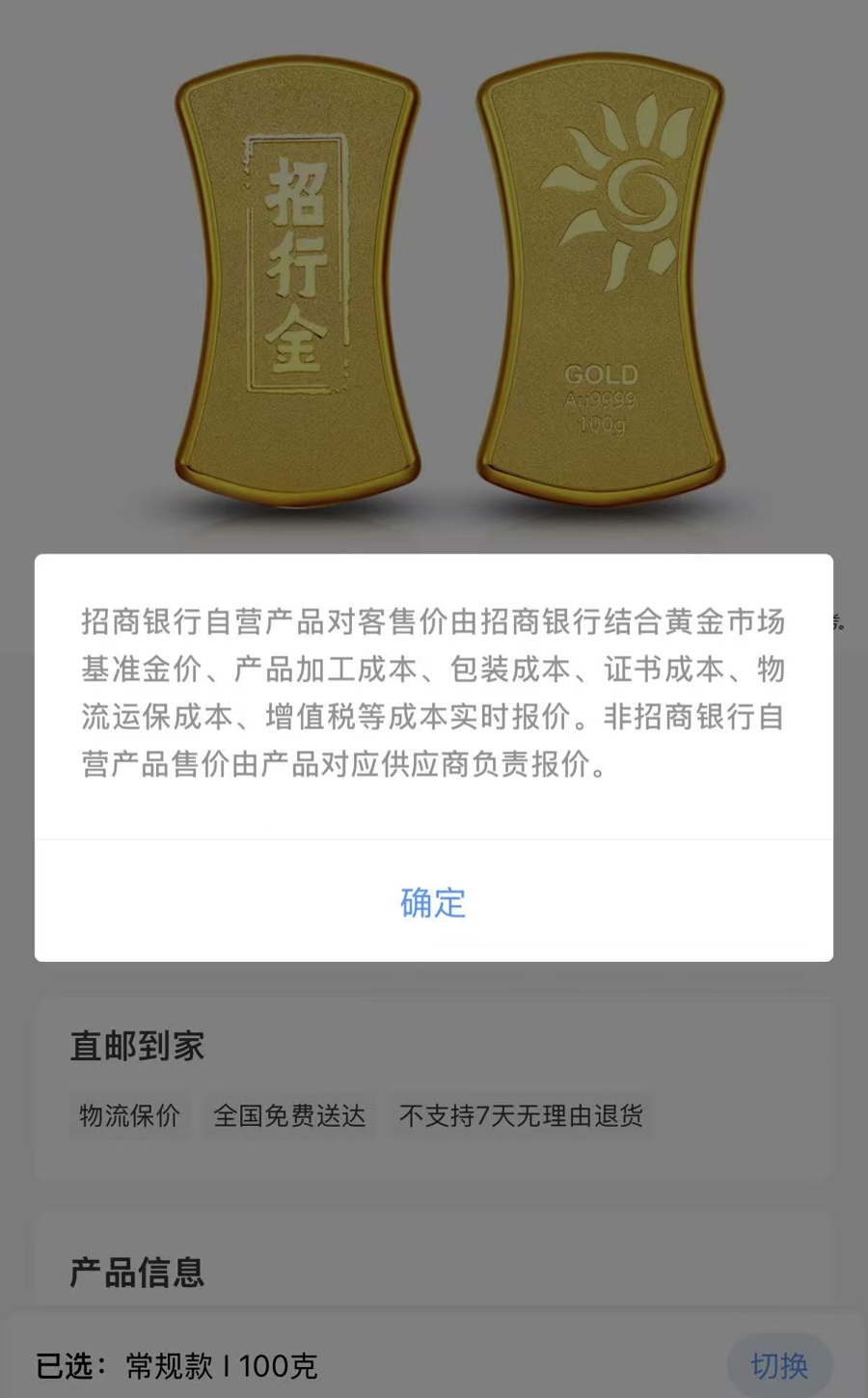 招商银行推出的什物金条,包含了加工费等成本。