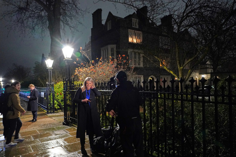 记者在英国伦敦的彼得·曼德尔森住所外恭候。 新华社/好意思联
